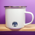 Metalowy kubek emaliowany.
