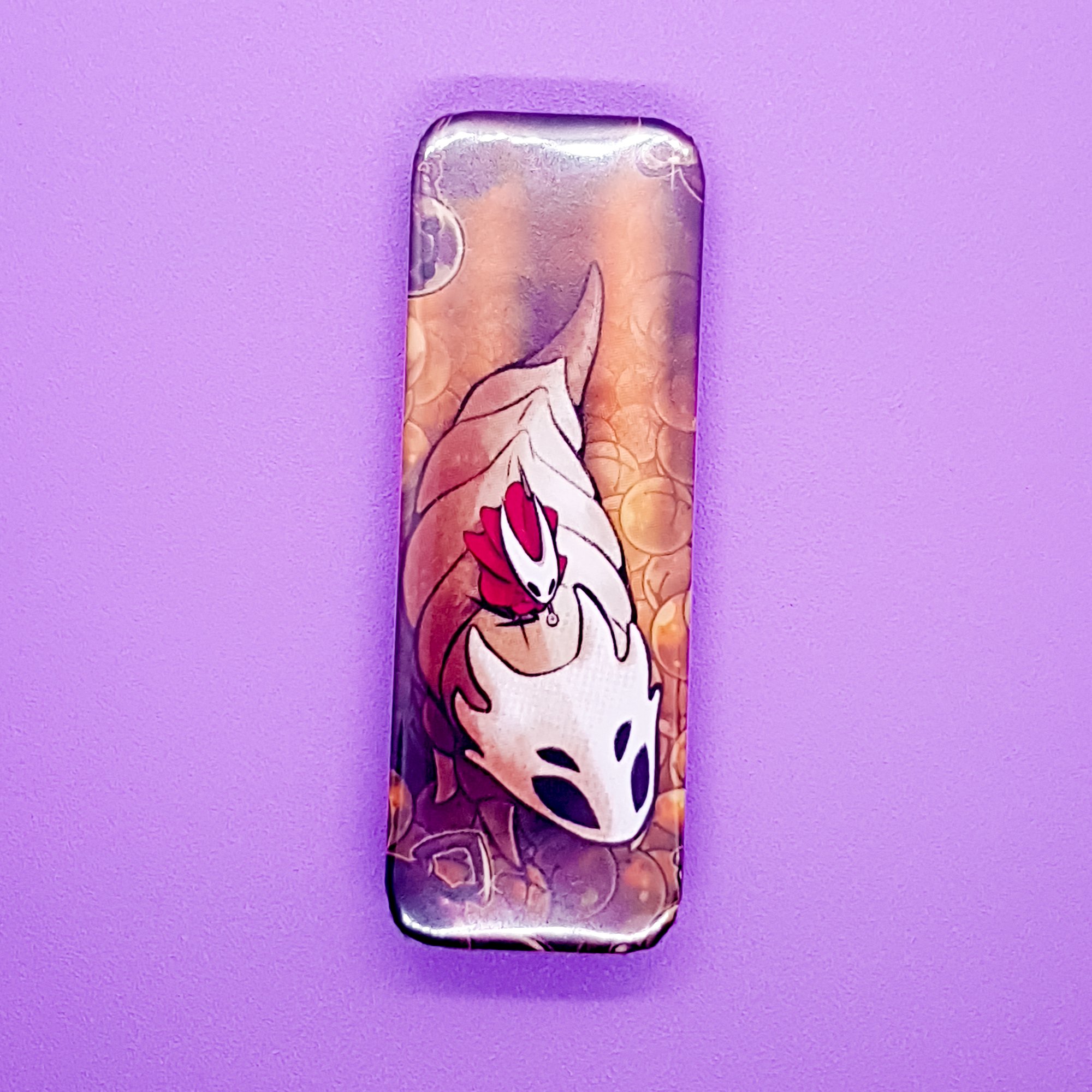Przpinka z gry Hollow Knight: Silksong o rozmiarze 2,5x7cm.