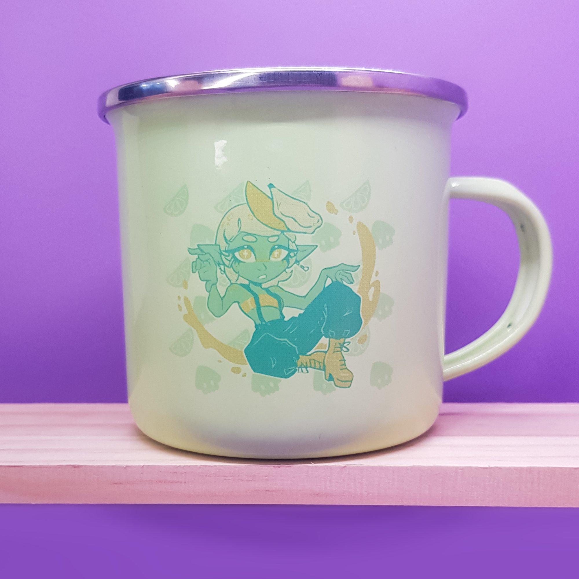 Jasnozielony metalowy kubek emaliowany. Wymiary: 80 m wysokość, 80 mm średnica Pojemność: 250 ml Waga: 144 g Odporny na wysoką temperaturę. Nie nadaje się do mycia w zmywarce!